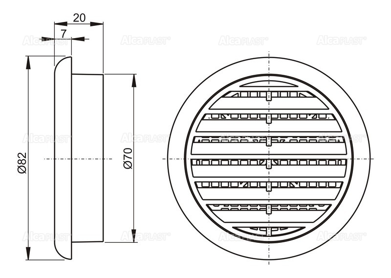 Round plastic ventilation grille Ø70 mm