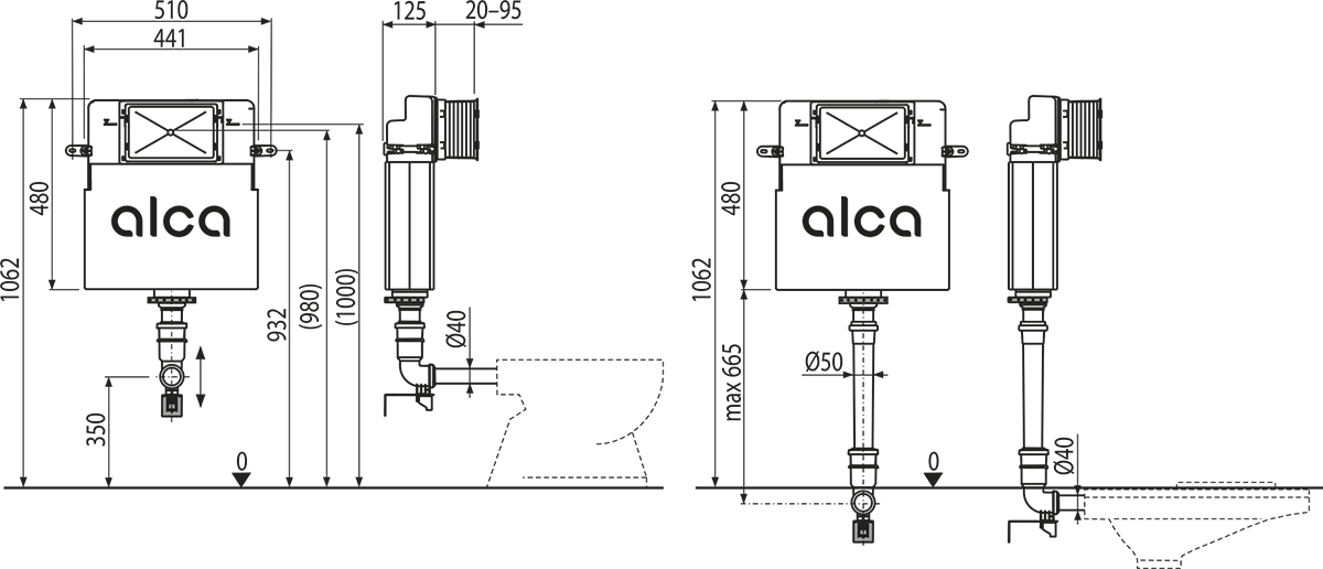 • Connection set Ø40 for connection to the toilet bowl from the water supply tank