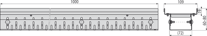 - Height adjustable drainage channel body 60–80 mm