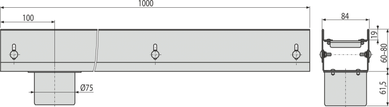 • Height adjustable drainage channel body 60–80 mm