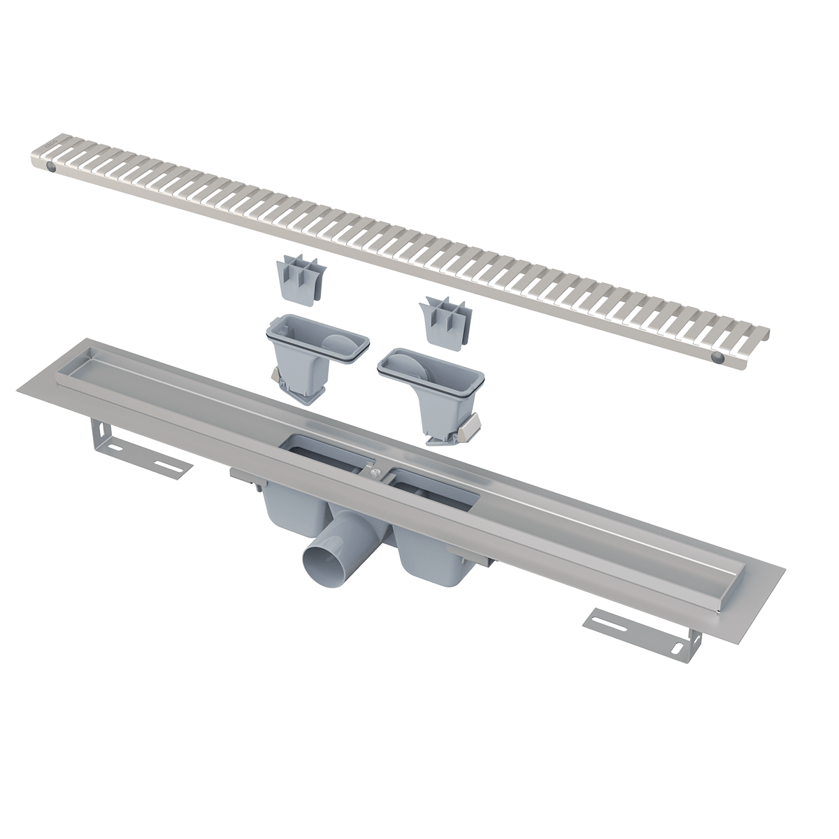 - Linear drain from stainless steel (hardened by pickling, passivation and electrochemical polishing)