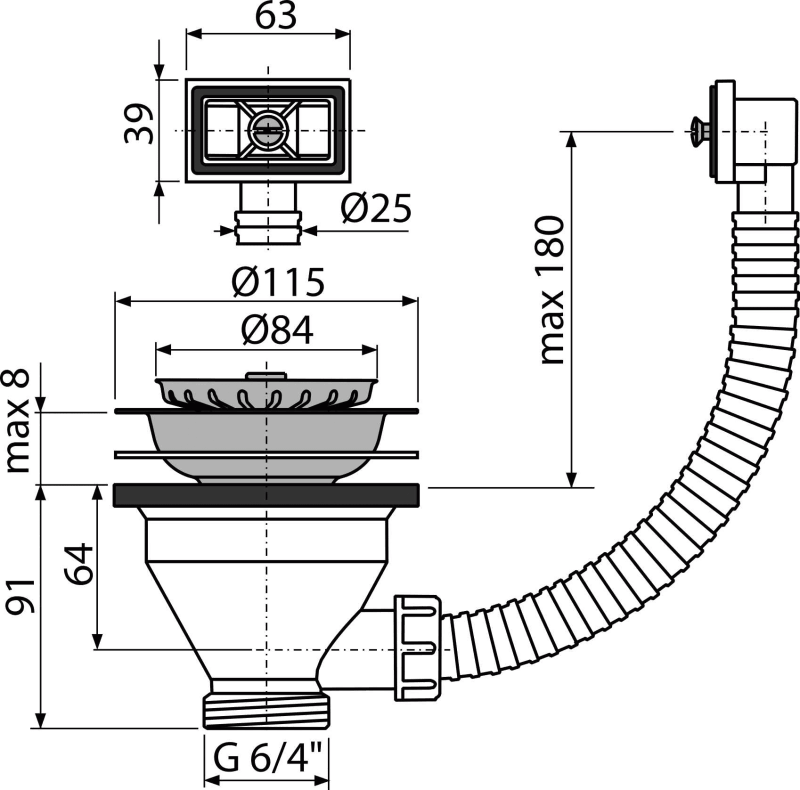 - Thread for connection to the sink trap 6/4"
