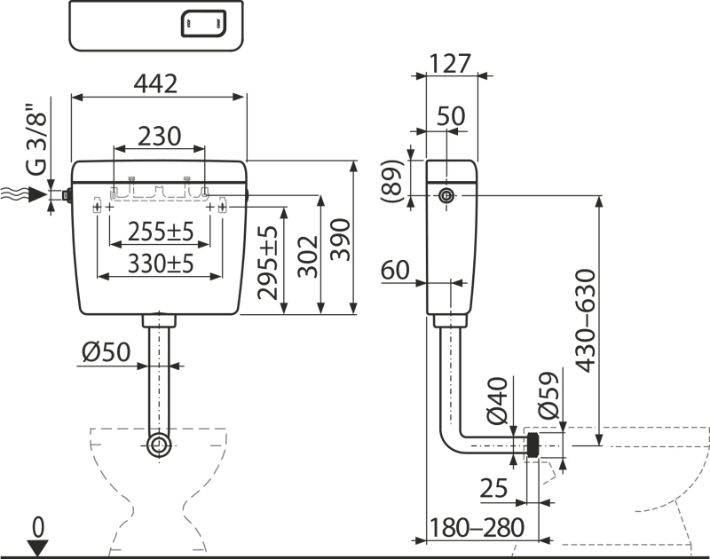 - Volume 8 l with a large variety of settings for the flushing water volume