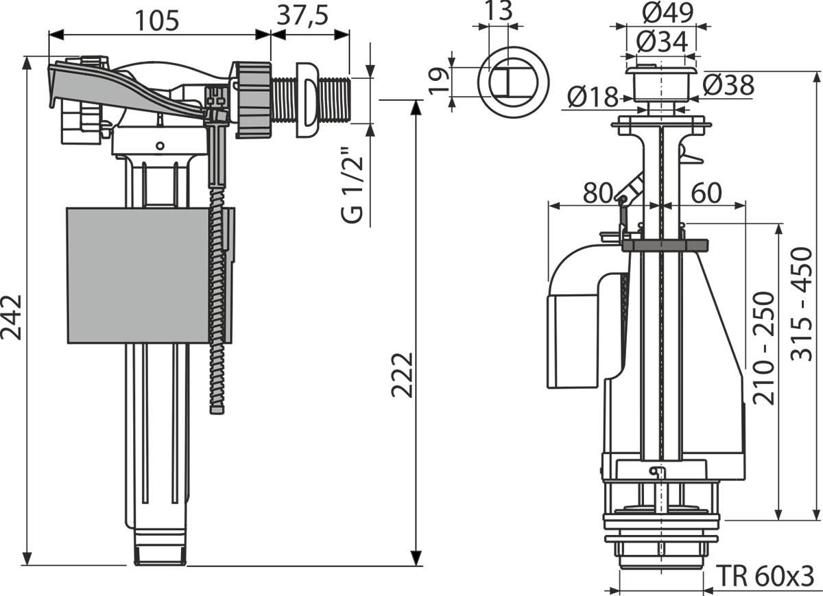 - The design allows optimum height adjustment of the valve according to the height of the cistern