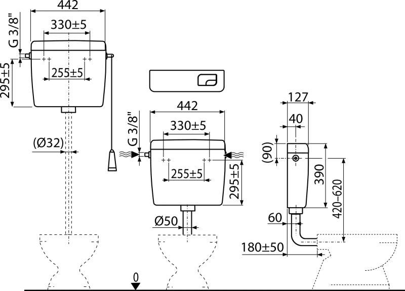 - Volume 8 l with a large variety of settings for the flushing water volume