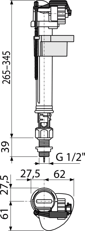• The design allows optimum height adjustment of the valve according to the height of the cistern