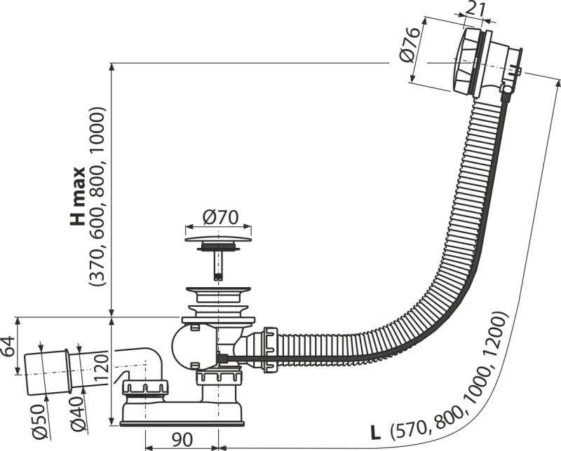 • Odour trap of polypropylene, thermally and chemically resistant, longitudinally welded