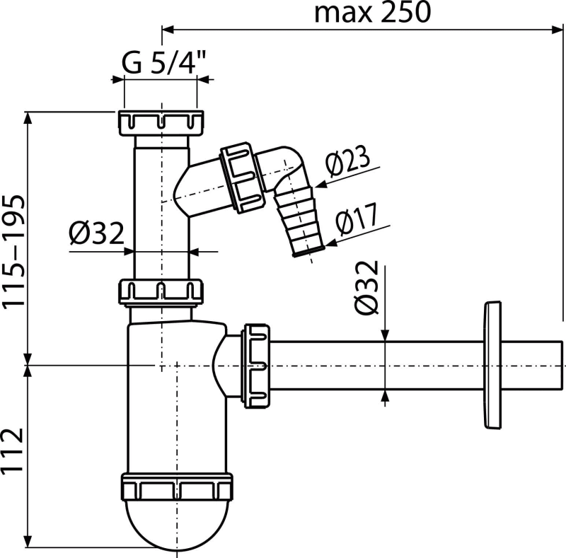 - Connection to waste pipe Ø32 mm