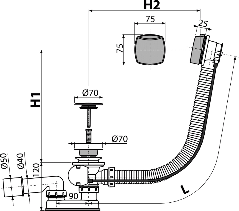 - Odour trap of polypropylene, thermally and chemically resistant, longitudinally welded