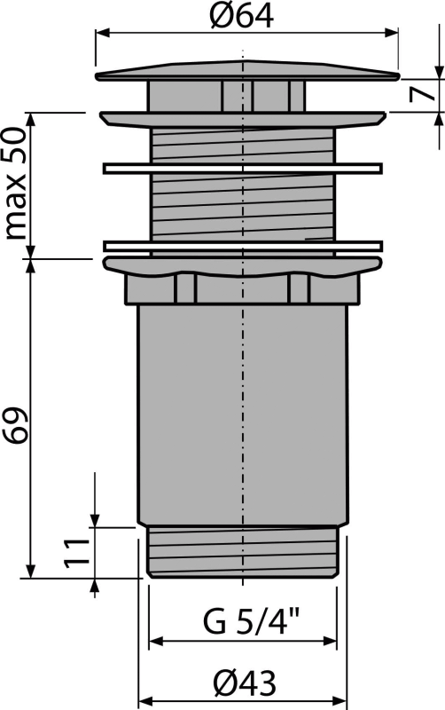 Wash-basin waste 5/4", metal, big non-closing plug, for wash-basins without overflow