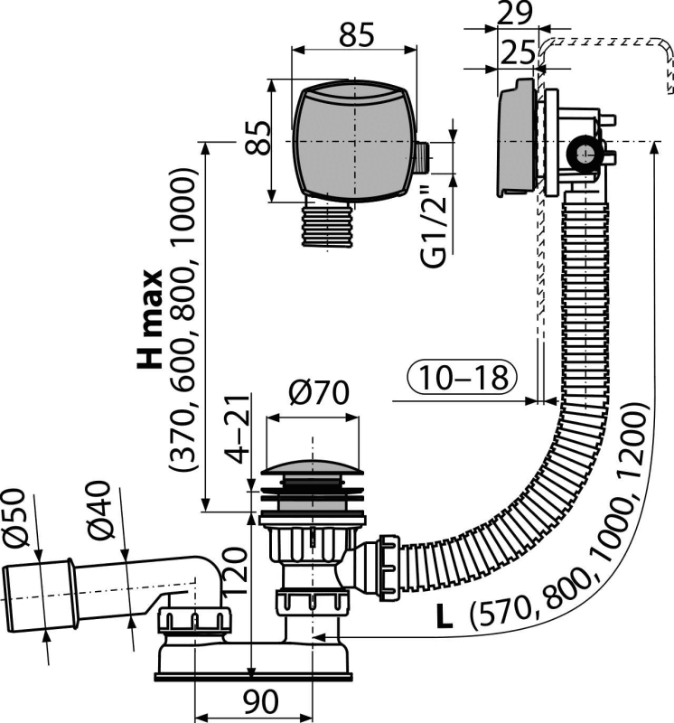 - For bathtubs with drain outlet Ø52 mm
