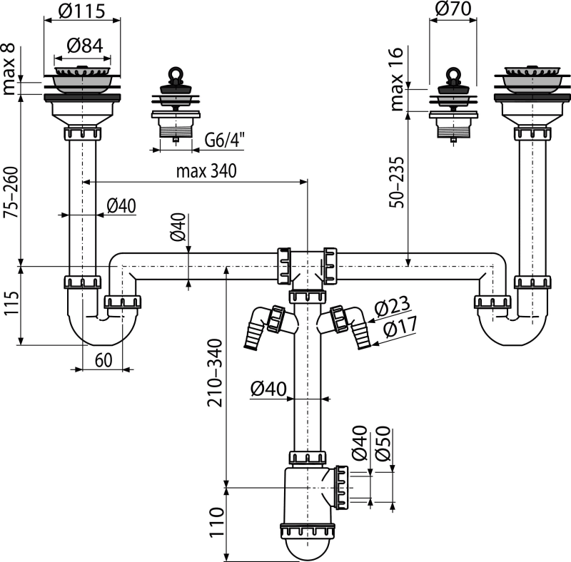 - Sink waste 6/4" with stainless steel grid Ø115 mm – 2 pcs