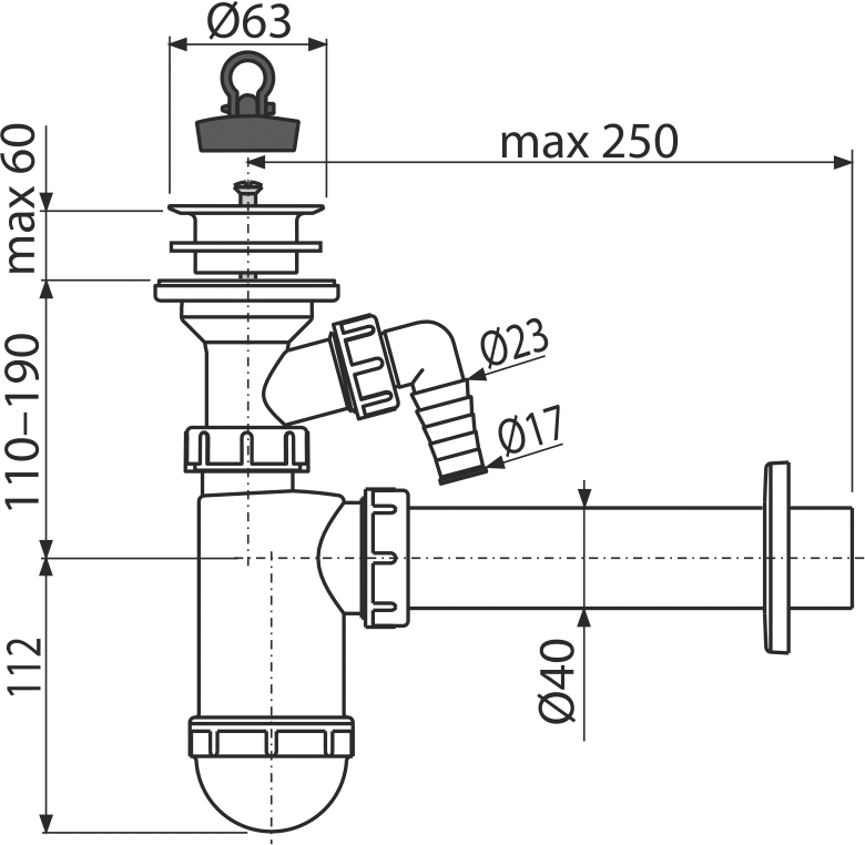 | Odour trap | 58 mm |