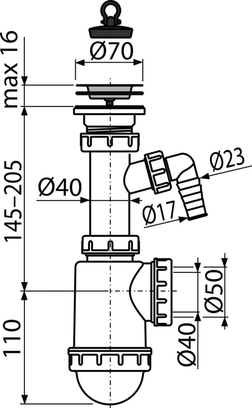 • Waste outlet ready for connection to drain pipe Ø50 mm or Ø40 mm