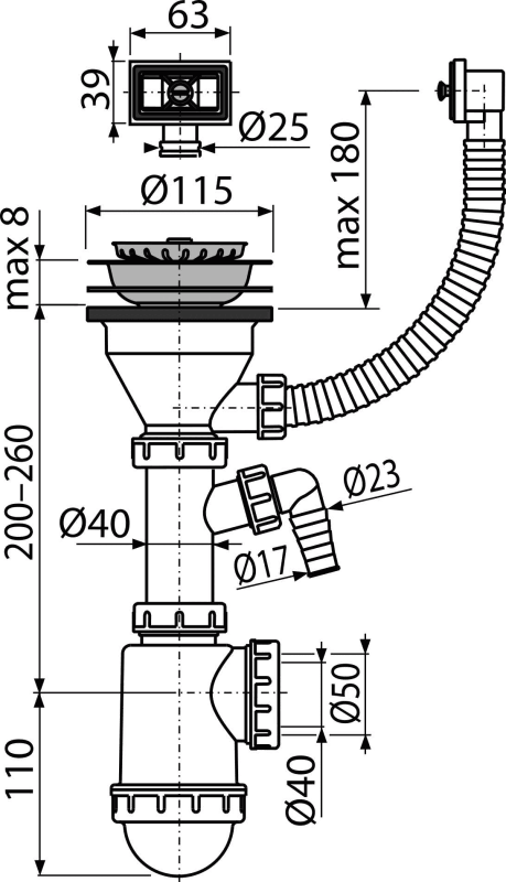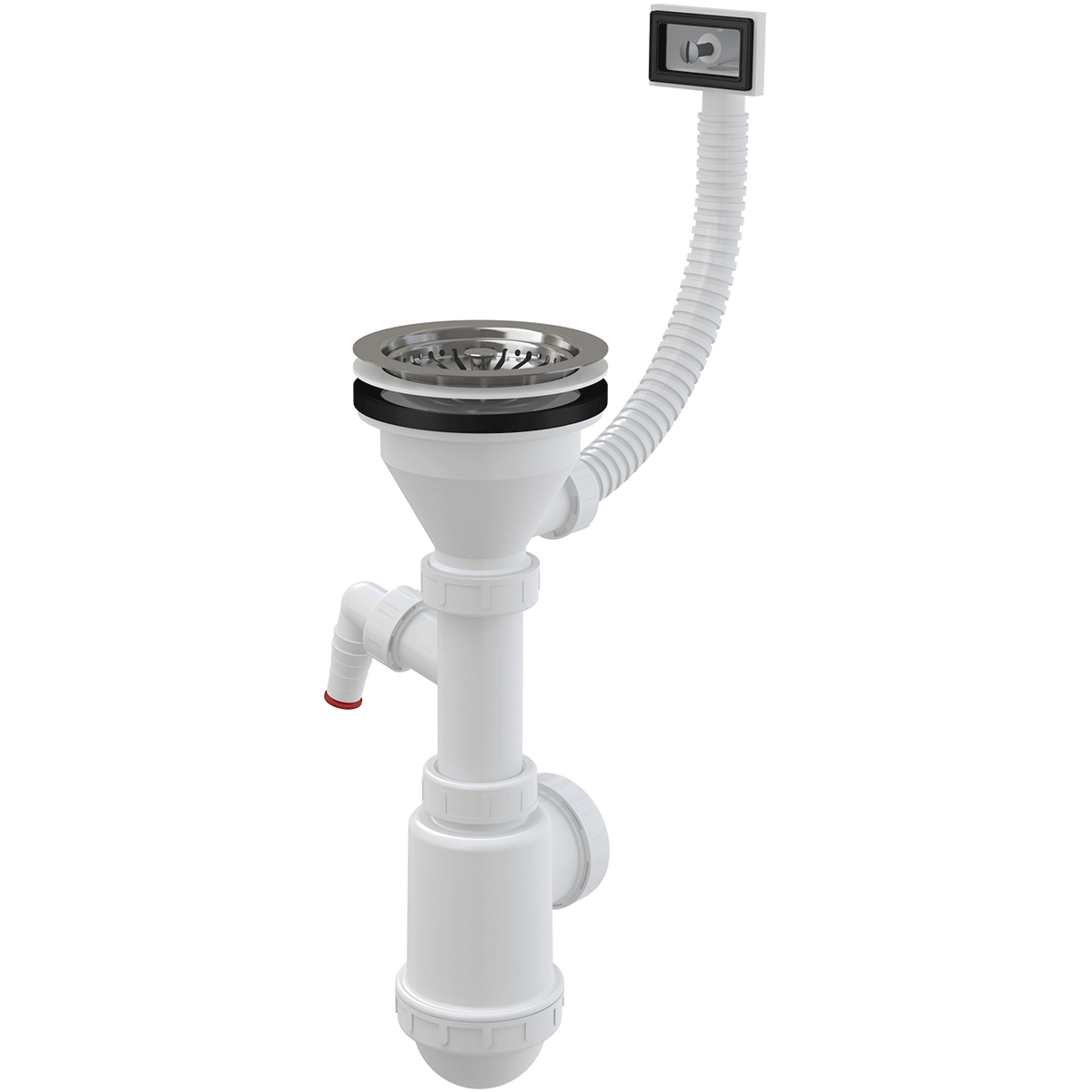 Sink waste and trap with stainless steel grid DN115, flexi overflow and connector